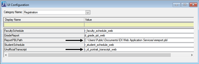 4.In the Value column, enter the location of the .pbl for the Registration module.